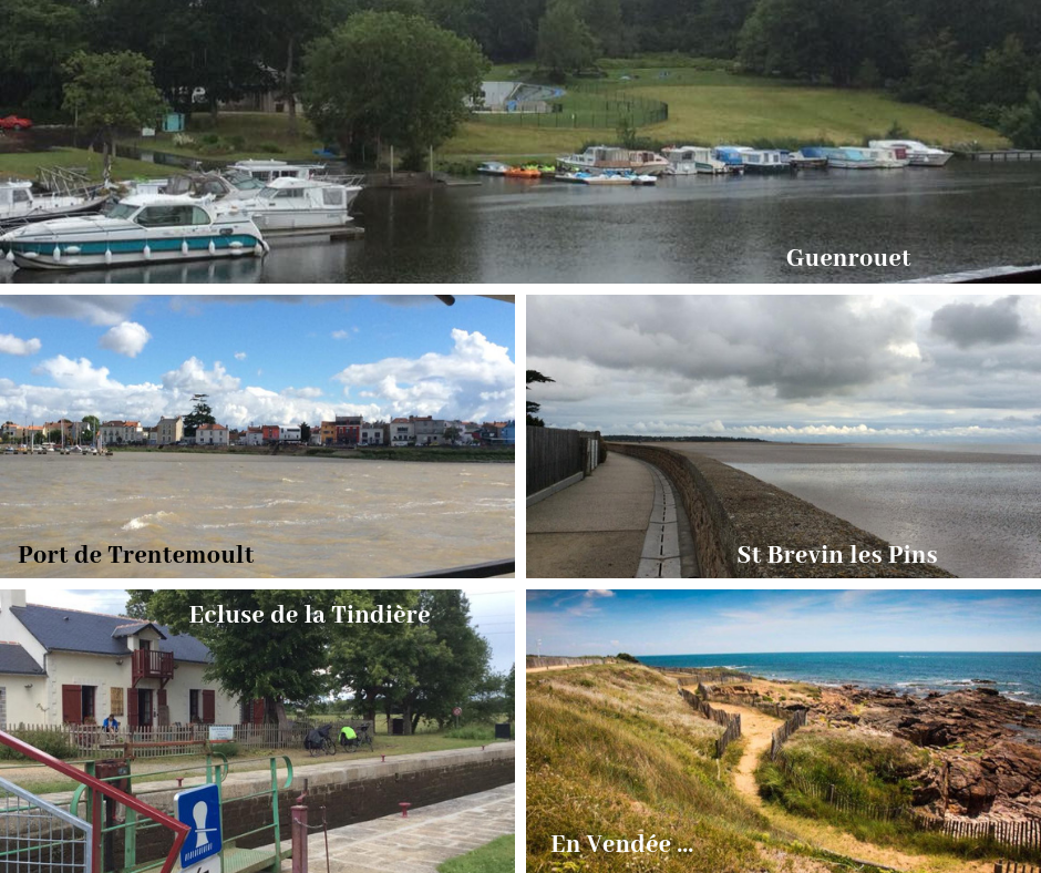Lundi 10 juin: « Aujourd’hui..97 km , une chute sans gravité mais punaise qu’ils sont chargés ces vélos ! Nous avons quitté Nantes en bateau navette pour arriver à Trentemoult. C’est super joli ! Une bonne nuit de repos et demain direction Saint Brevin. ».