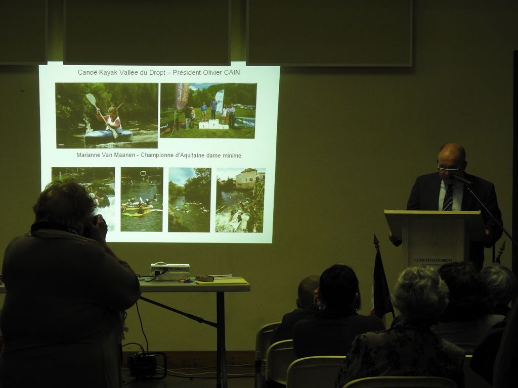 Monsieur le Maire en profitait pour remercier de leur travail, les journalistes locaux, Guy Brunetaud pour le Sud-Ouest et Charlotte Pelletier pour Le Petit Journal.