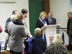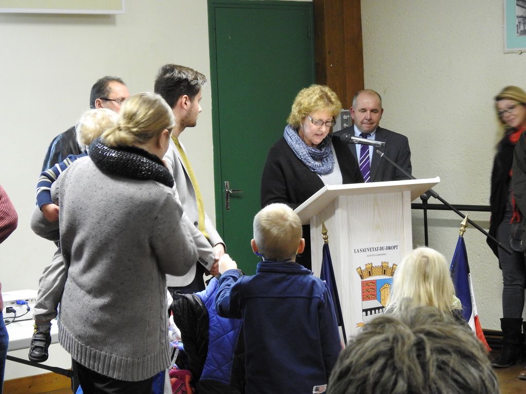 La soirée se poursuivait par une nouveauté, l’accueil des nouveaux habitants que la municipalité a décidé de faire chaque année. Ce sont 13 familles qui étaient invités, dont 6 qui se sont présentées. Après un petit discours d’accueil, il leur fut remis un livret qui leur permettra d’avoir quelques données historiques ainsi que des renseignements pratiques, administratifs, municipaux et associatifs nécessaires pour démarrer une nouvelle vie. Ce discours était repris par Lesley Walker, Sauvetatoise, dans la langue de Shakespeare puisqu’une majorité de ces familles viennent d’outre Manche. Moment très convivial qui fut autant apprécié des nouveaux Sauvetatois que des anciens.