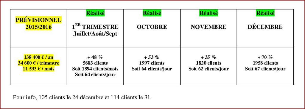 La fréquentation et les chiffres réalisés sont très encourageants et démontrent que ce service était nécessaire et attendu sur la commune. La clientèle n’est pas seulement Sauvetatoise mais vient aussi des villages alentours. On notera la très faible baisse du nombre de client par jour entre la saison estivale et l’arrière saison ce qui démontre que cette clientèle n’est pas seulement de passage.