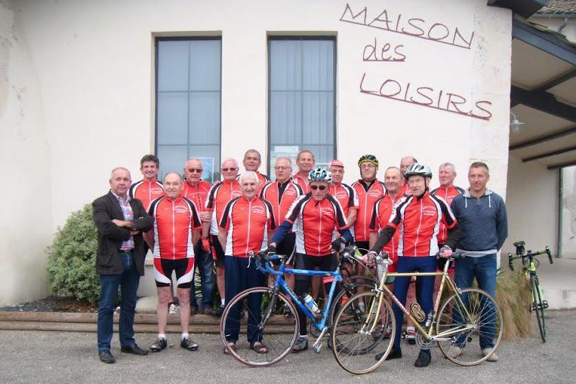13h20, 15 membres sont là pour la photo de départ, devant la maison des loisirs, entourés par JEAN-LUC
