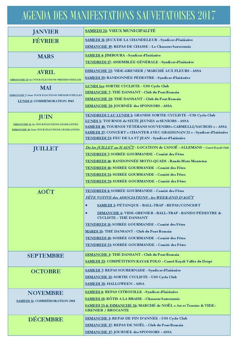 Un rappel des manifestations communales: la Journée du Patrimoine Pont et Moulin en collaboration avec la commune d’Agnac qui permit de présenter les travaux du Pont Roman à de nombreux visiteurs dont des personnalités départementales, la cérémonie en l’honneur de Cindy Coat, Championne de la Coupe du Monde de descente en canoë 2016, le concert du groupe Québécois Canailles avec le partenariat de la CCPL et de Staccato, le soutien à un participant sauvetatois au 4L Trophy, l’accueil de la Ronde Cycliste USEP des écoles et enfin, le spectacle de Bastid’Art avec les Compagnies KOZH et Ça va valser.