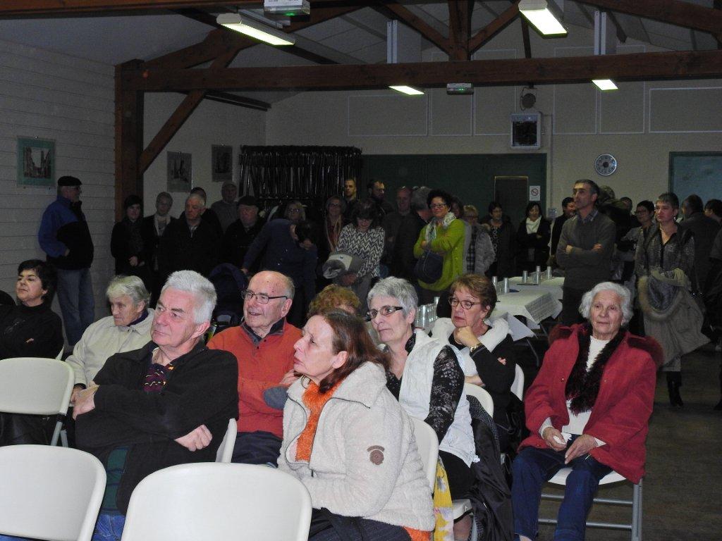 Venait ensuite la présentation des projets en cours ou à venir pour 2017: la poursuite des travaux de restauration du Pont Roman, la réfection des vitraux de l’Église St Germain, la plantation d’arbustes sur l’aire de camping-car, l’abattage des peupliers de la parcelle communale située près du Stade Pierre Périé et l’achat envisageable de bâtiments au cœur du village.