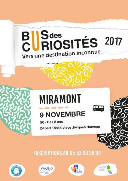 Le rendez-vous est donné le jeudi 9 novembre à 18h45 place Jacques Humeau à Miramont de Guyenne, le déplacement vers le lieu de la représentation se fera en bus. Le nombre de places est limité, inscription obligatoire avant le 31 octobre.