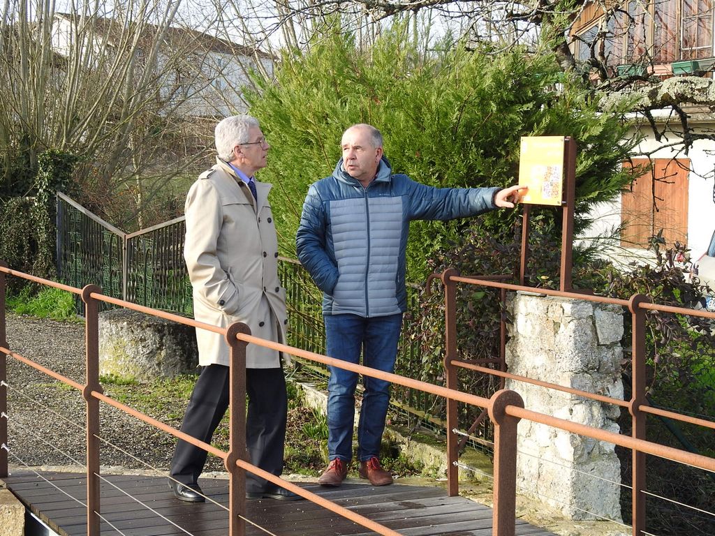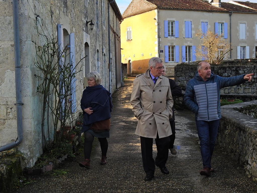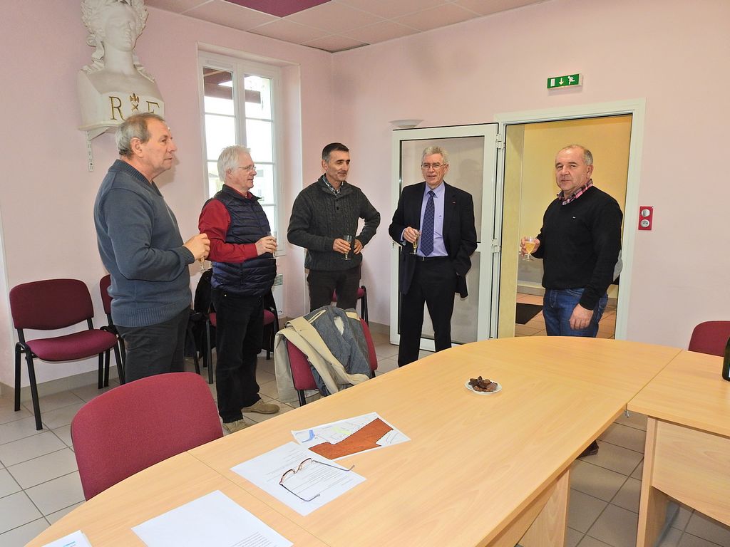 L’après-midi se terminait dans la salle du conseil municipal par une coupe de champagne. Noble breuvage en l’honneur de l’anniversaire du Maire Jean-Luc Gardeau qui permettait aux langues de se délier de façon moins protocolaire et d’apprendre que notre sous-préfet aime arpenter les chemins de randonnée de son département d’adoption avec son épouse. Il est donc reparti avec la plaquette du circuit de randonnée de La Sauvetat intitulée « Balade du Pont Roman ».