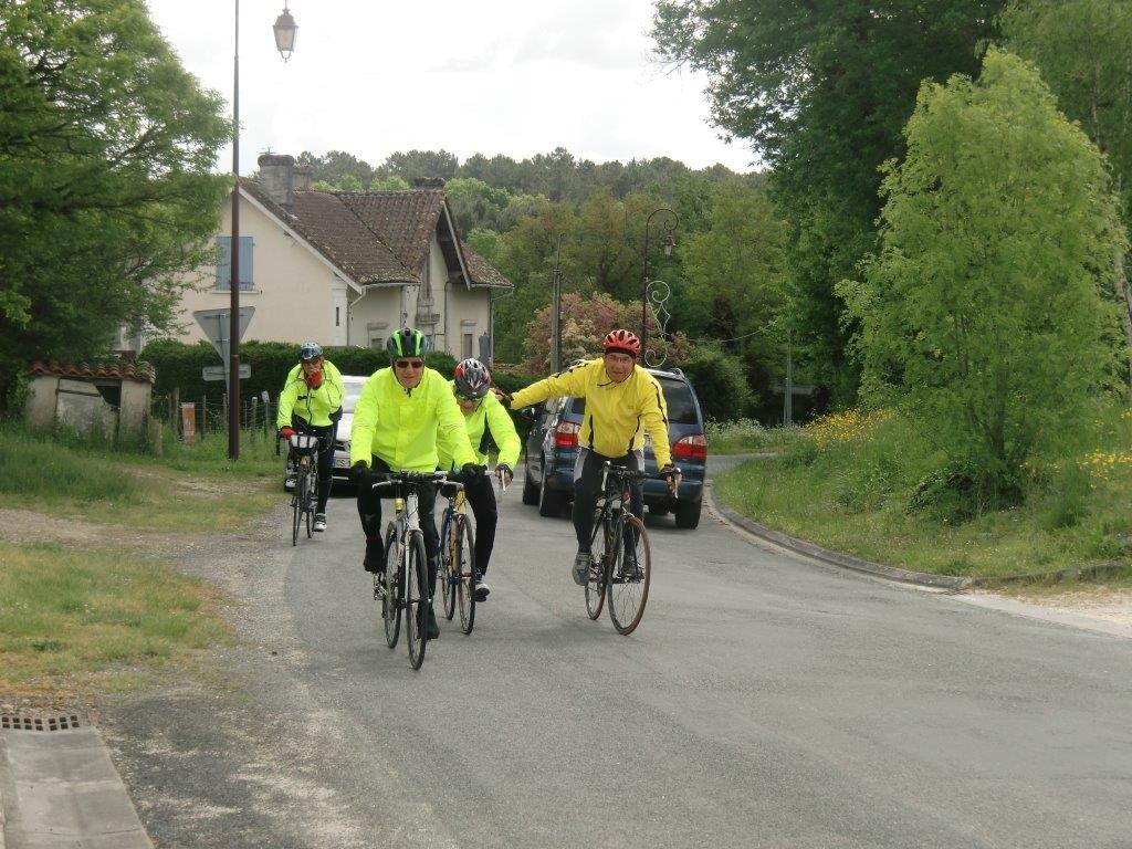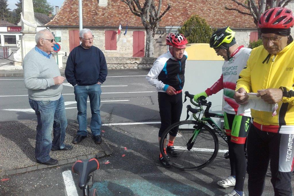 A mi parcours, pause café au Fleix, avant d’affronter la montée en direction de Ribérac, côte surement célèbre, puisqu’elle a été nommée « Le Petit Tourmalet ». Les dames et amis accompagnateurs ne tardent pas à nous rattraper, et après quelques mots d’encouragement au passage, poursuivent jusqu’à Echourgnac pour nous accueillir comme il se doit après nos derniers efforts.