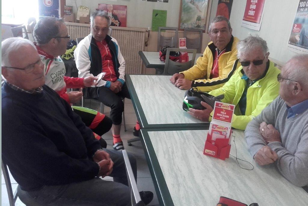 Germain et son ami Guytou, Alain, Jean-Pierre, Alphonse et Paulo, sont présents au rendez-vous à 8 h précises. Quand à Max et Guy nos fidèles et dévoués aïeux, ils s’empressent de charger nos sacs dans le véhicule d’assistance.
