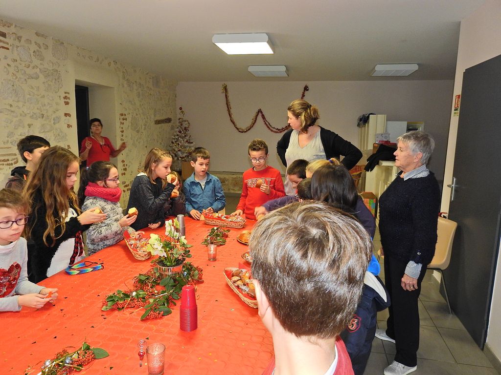 L’heure impartie étant écoulée, c’est vers la belle table au décor de Noël que se sont dirigés les enfants. Gâteaux, friandises et jus de fruits les attendaient. Tout fut mangé dans un joyeux brouhaha pour le plus grand bonheur des adultes organisateurs.