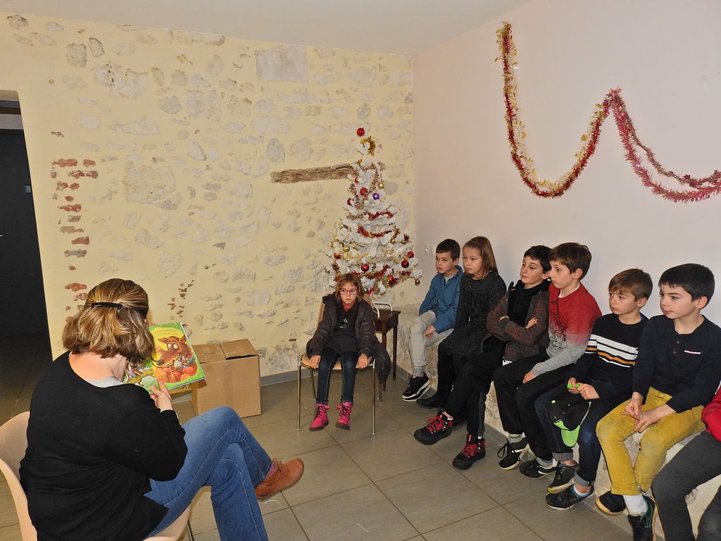 Rien d’inhabituel, si ce n’est ce sympathique goûter de fêtes, puisque les élèves fréquentent ce petit point lecture aux étagères bien garnies un vendredi après-midi sur deux. Comme cela se pratique lorsqu’ils sont reçus par Françoise, la classe s’est scindée en deux groupes. Les enfants du premier ont rendu le livre pris lors de la visite précédente pour pouvoir en choisir un nouveau aussitôt enregistré par Arlette. Le second groupe a rejoint Stéphanie, leur professeur des écoles, dans la pièce voisine pour la lecture d’un conte.