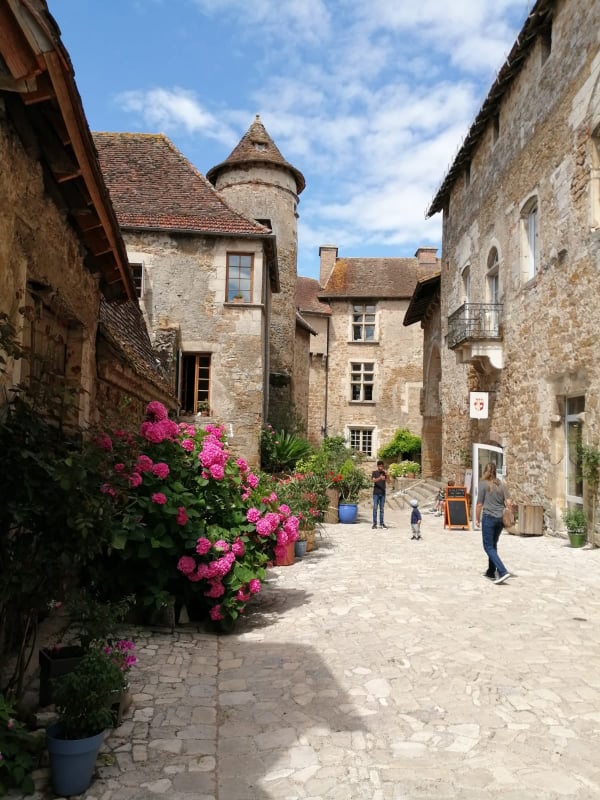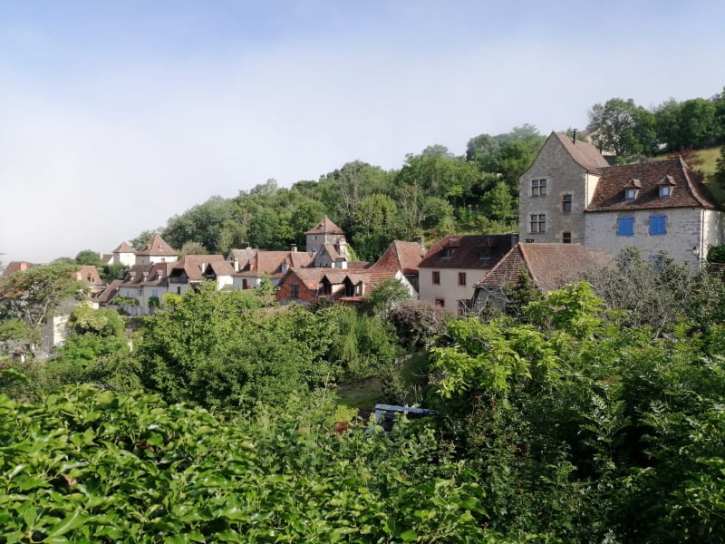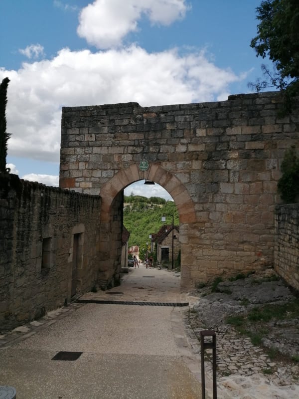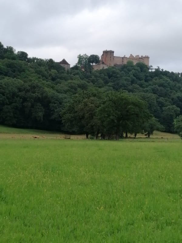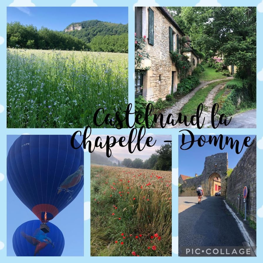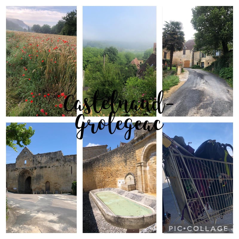Jour 17 (08/07) : Étape vers Carrenac. Partie à 8h par la route pour économiser mes pieds, j’ai aperçu au loin le chateau de Castelnau. Cela m’a permis de visiter ce beau village de Carrenac. Ses belles maisons, son cloître, son château … Peu de touristes en ce début juillet, une seule pélerine !!!