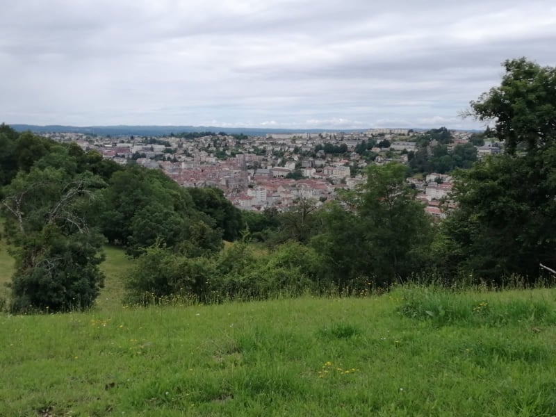 Jour 13 (04/07) : Vic sur Cère – Aurillac. 7h15, il tombe des cordes ! Je me remonte le moral en prenant une seconde tartine. Mais finalement, quand je pars, la pluie s’est calmée. Pas pour longtemps et cela joue au yo-yo un certain temps. Les chemins sont toujours aussi délavés ou deviennent carrément ruisseaux qu’il faut passer à gué ! Le vent se lève et chasse les nuages. L’Espagne est encore loin mais vers 13h40, j’aperçois Aurillac dans le fond. Il faudra encore un certain temps pour y arriver et trouver l’endroit où je dois coucher. Maintenant, avec mon téléphone moderne, c’est évidemment plus facile 😉