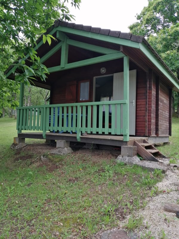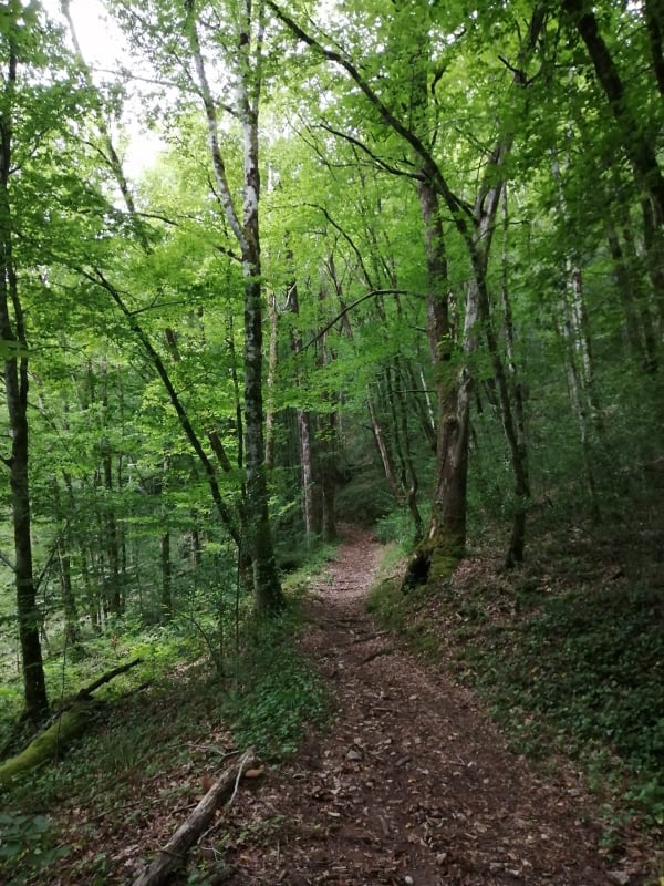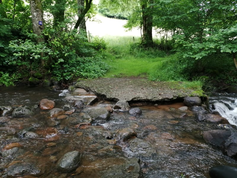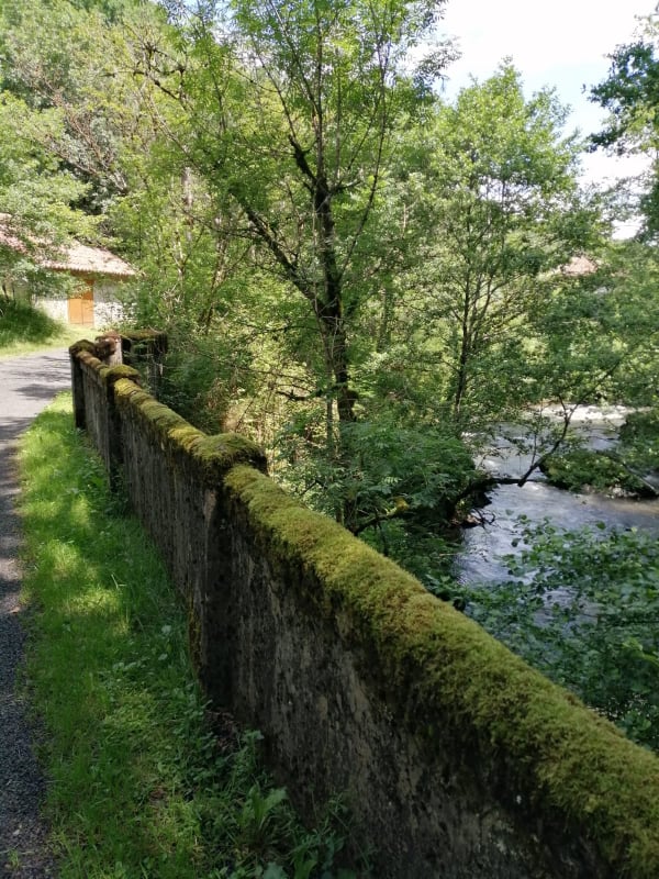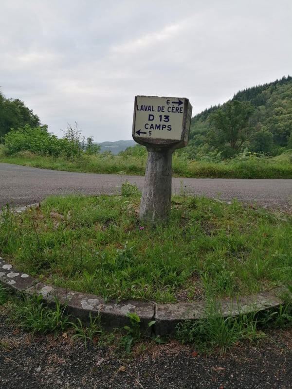 Jour 15 (06/07) : Laroquebrou – Camps Saint Mathurin. Hier soir, en lisant ce que l’étape me réserve, surprise ! Je ne peux pas m’aventurer sur le 1er tronçon ! Passages délicats, parfois escarpés, parfois glissants. Avec toute cette eau qui ruisselle, je ne veux pas prendre de risque. Alors, 7h, je suis au café (chocolat chaud) dans l’hypothétique espoir qu’un conducteur aille vers Camps. Que nenni ! Alors … la route ! On ne peut pas dire qu’elle soit trop fréquentée ! Mais la Providence ! 2 jeunes partant travailler sur le gros chantier EDF et connaissant parfaitement le coin me déposent à une autre jonction du sentier. Et c’est reparti ! Soirée au camping, dans un mini chalet avec le lac en face …