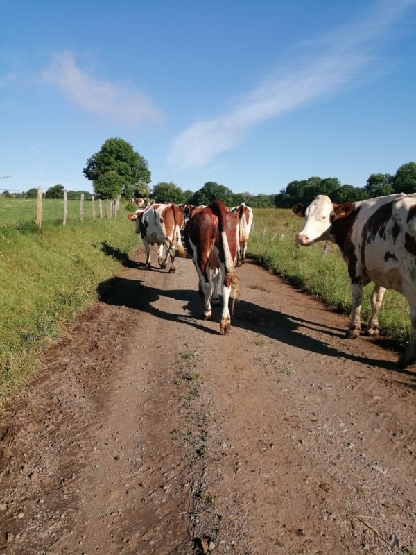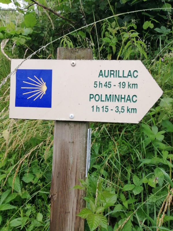 Jour 14 (05/07) : Aujourd’hui, étape très longue d’Aurillac à Laroquebrou. Le temps est maussade en partant. Je mets 1 heure pour sortir complètement de l’agglomération d’Aurillac ! Ensuite, sentiers boueux à souhait ! Quelqu’un en a même perdu sa coquille ! Le soleil arrive vers midi, d’autres ampoules aussi !!! Heureusement, j’ai fait le plein de pansements. Problème pour demain … pluie prévue et dans ce cas, le 1er tronçon de 8 kms est fortement déconseillé ! Que faire ???
