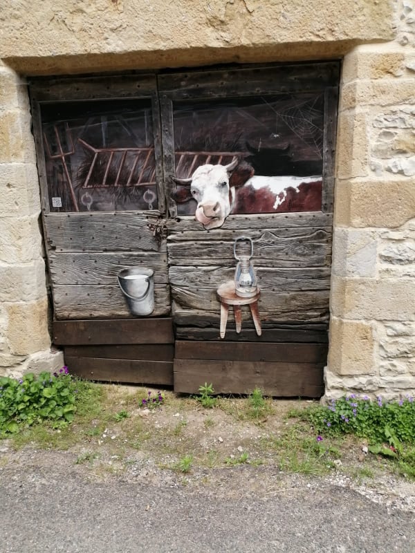 Jour 16 (07/07) :Depuis Camps Saint Mathurin, je pars vers Bretenoux. Je suis dans une nouvelle région, cela se sent, même les vaches ont changé 😉 De très belles maisons encore, des trompe-l’œil géniaux dans le village de Cornac ! Bretenoux est une bastide et dans ma chambre, j’ai rigolé en voyant ce petit plateau (nous attendrons le retour pour comprendre le risible du petit plateau …) … Les pieds souffrent toujours autant, à Rocamadour, je ferai le point …