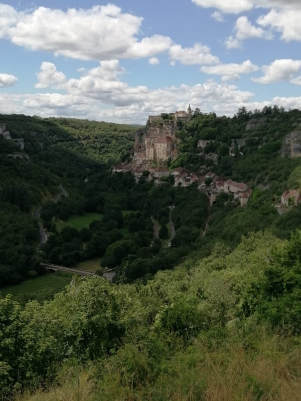 Jour 18 (09/07) : Arrivée à Rocamadour. Étape tranquille, de beaux chemins, des champs de lavande et des cigales qui chantent. Toujours autant d’émotions en voyant au loin ce site accroché à sa falaise. Entrée par la porte Sainte, montée des marches, tout un rituel qui fait monter la tension. Ce soir, je suis chez des amis. Repos demain samedi et dimanche, je repars direction La Sauvetat …