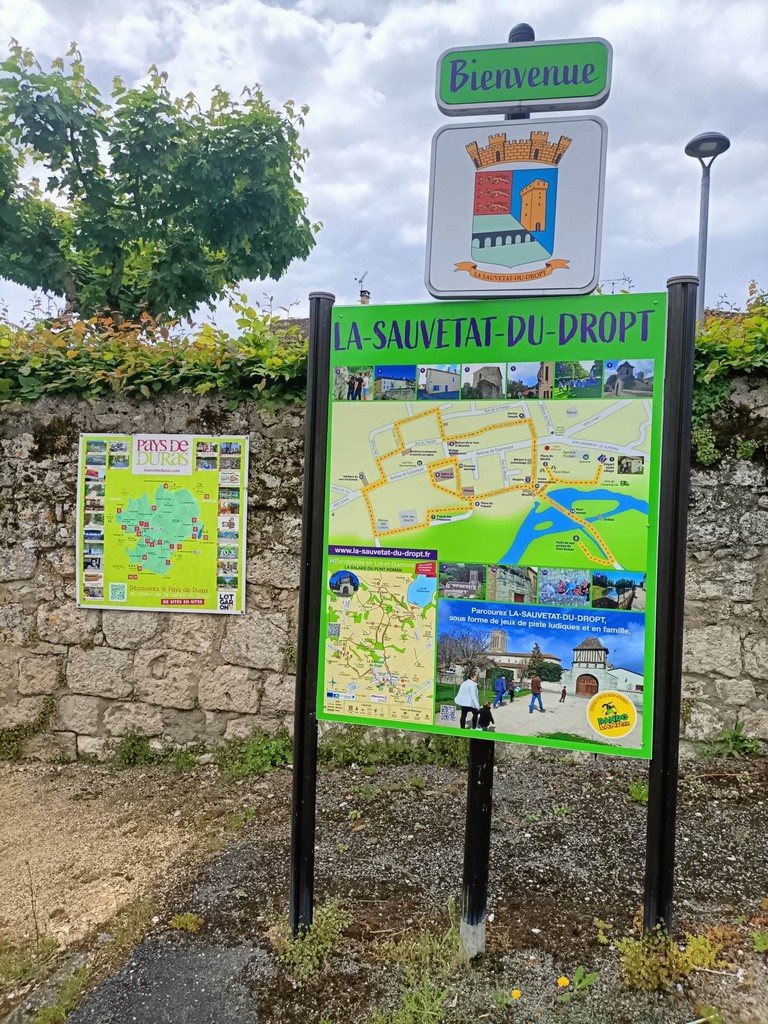 Si vous avez l’occasion de vous garer sur la Place du Moulin (parking du P’tit Panier du Dropt et de l’Agence Postale), vous avez peut-être remarqué qu’un des panneaux tourisme est flambant neuf ! Il reprend le plan de la visite guidée du village avec des photos récentes des 12 centres d’intérêts, annonce le jeu de piste Randoland à destination des familles ainsi que la randonnée de 9km intitulée « Balade du Pont Roman » avec la précision du point de départ.A découvrir à l’entrée de la place, près de l’ancien mur et du sentier qui mène au Pont Roman.