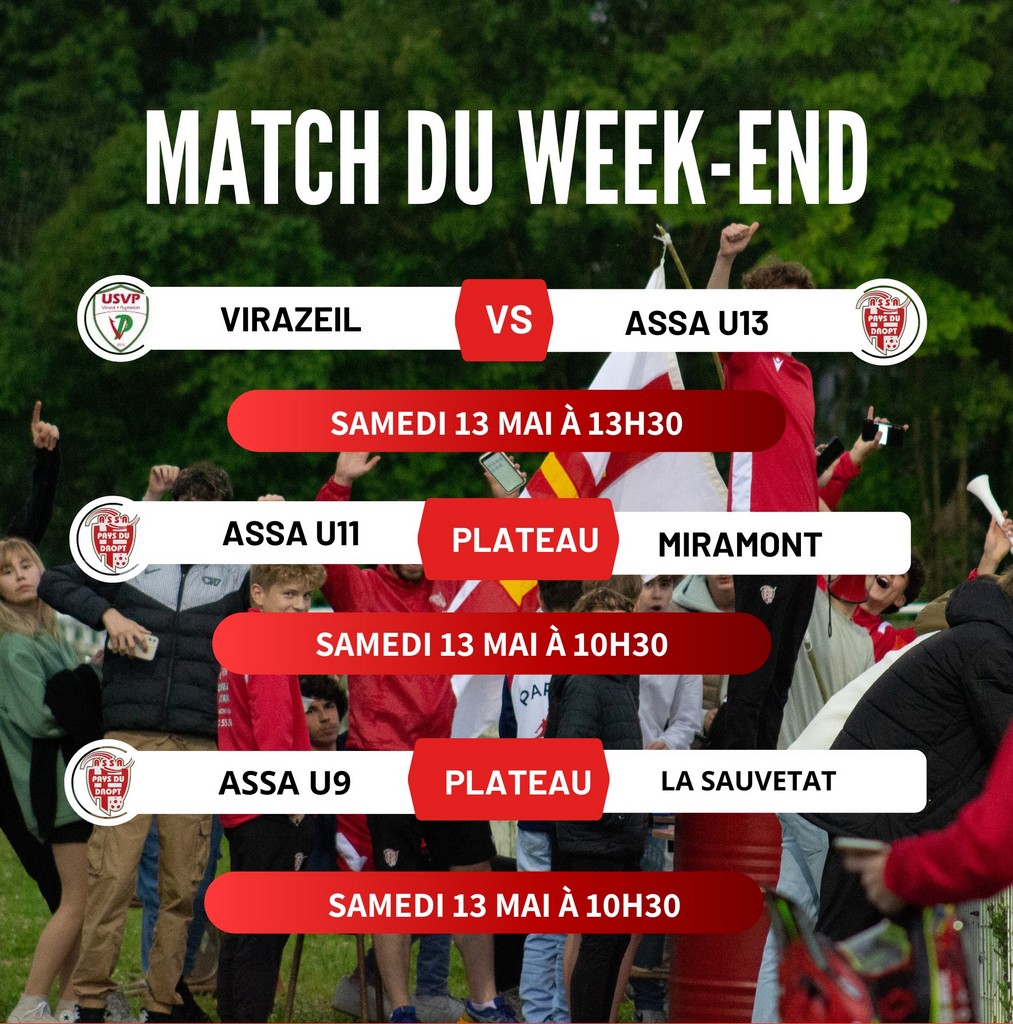 Les U7 étaient en plateau à Marmande. On souhaite un bon rétablissement à Lorenzo qui s’est blessé au poignet. Force à toi !Les matchs du week-end à encourager, le poster ASSA et recrutement de filles