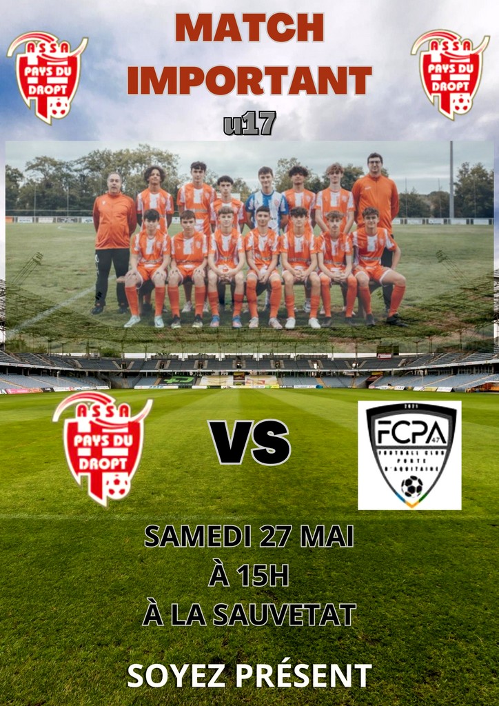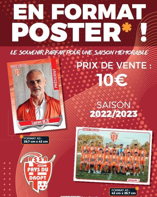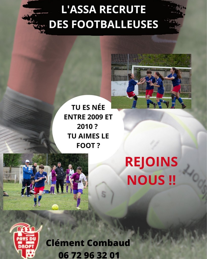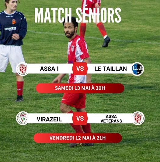 Venez encourager les jeunes et l’équipe fanion pour son dernier match à domicile de la saison ! N’oubliez pas que la photo de votre footballer ou de son équipe est disponible en poster au club au tarif de 10 €. Et enfin, l’ASSA recrute des filles aimant le foot nées entre 2009 et 2010. Pour plus de renseignements, contactez Clément Combaud au 06 72 96 32 01.