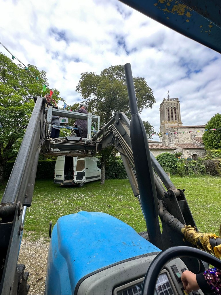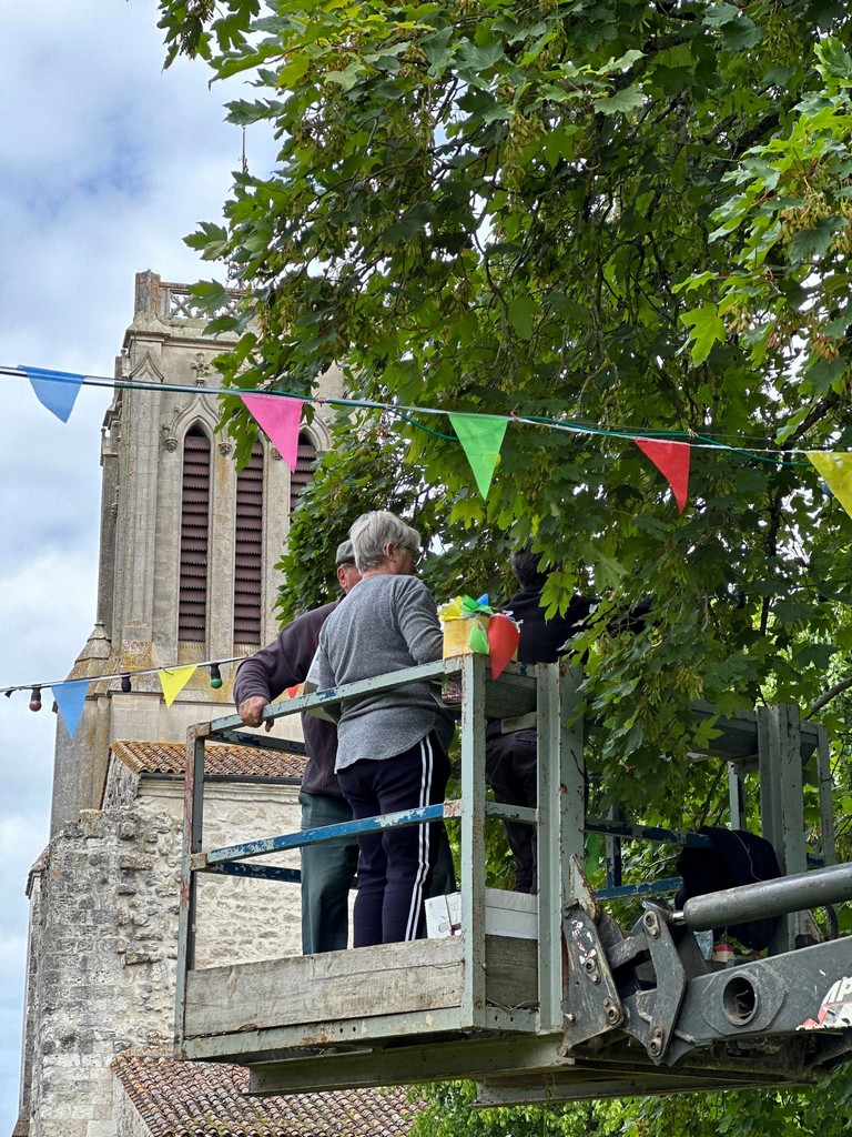 Les monteurs de buvette n’ont pas eu de photographe cette année. En fait, ils furent trop rapide ! Par contre, les poseurs d’ampoules et de fanions ont vu l’arrivée d’une paparazzi qui s’est bien amusée et que l’on remercie pour le partage.