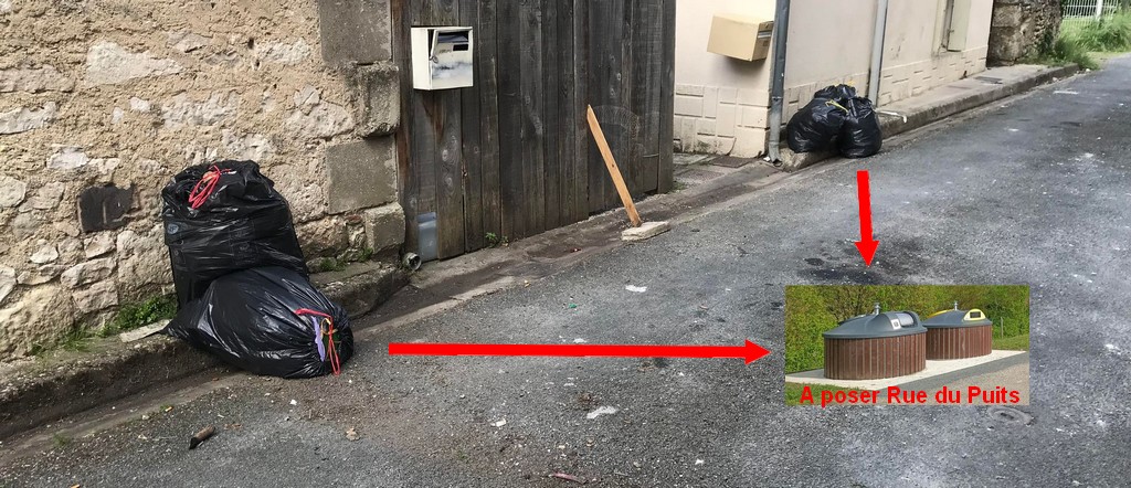Les habitants du cœur de bourg doivent utiliser les colonnes semi-enterrées – Voir ci-dessous les rues concernées
