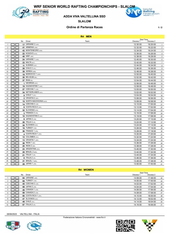 QUELQUES PHOTOS DES 4 SENIORS DU CKC VDD EN DIRECT DU CHAMPIONNAT DU MONDE DE RAFTING A VALTELLINA EN ITALIE – PAS DE RÉSULTATS TRANSMIS POUR LE MOMENT … mais un lien à suivre pour avoir les news chaque jour WRF Senior World Rafting