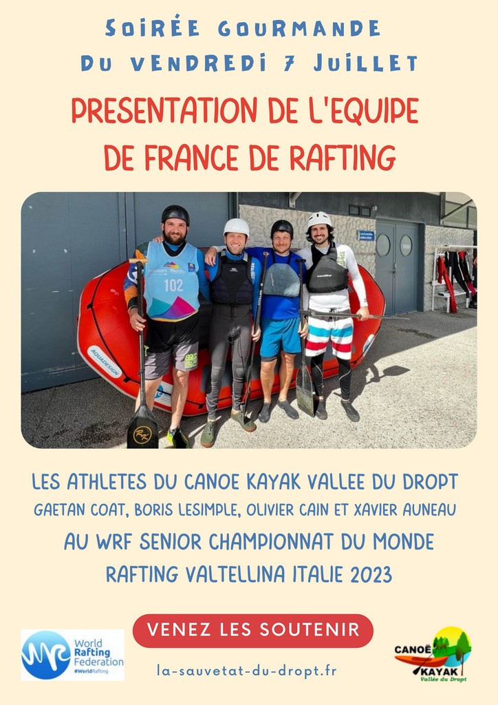 Supporter une équipe de sport locale du Lot et Garonne sélectionnée pour la première fois en Equipe de France de la FFCK (Fédération Française de Canoë Kayak).