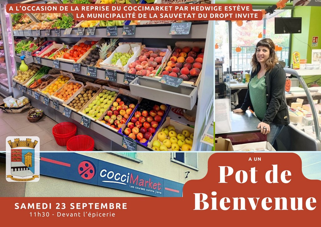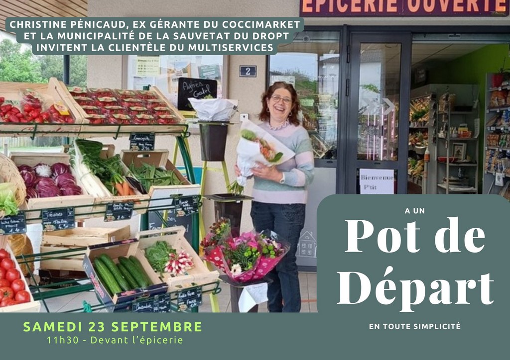 Samedi 23 septembre, Christine Pénicaud, ex-gérante du Coccimarket, ainsi que la Municipalité de La Sauvetat du Dropt invitaient sauvetatois, clients et fournisseurs à une passation officialisée de l’épicerie multiservices située sur la Place du Moulin tenue depuis le mois de juin par Hedwige Estève d’Allemans du Dropt.