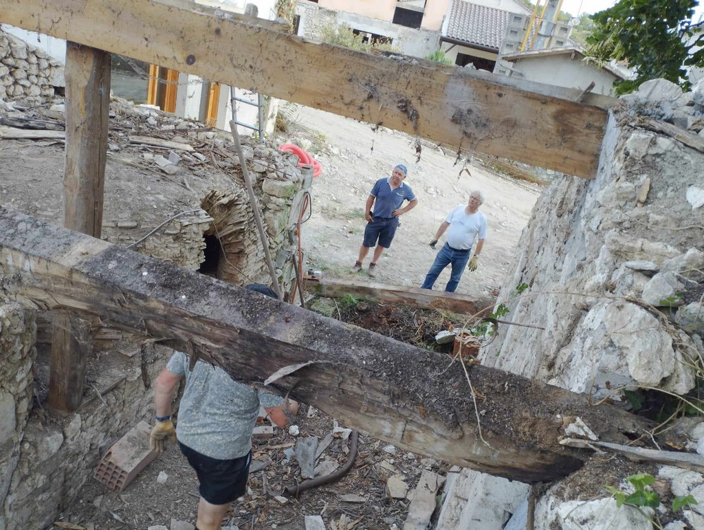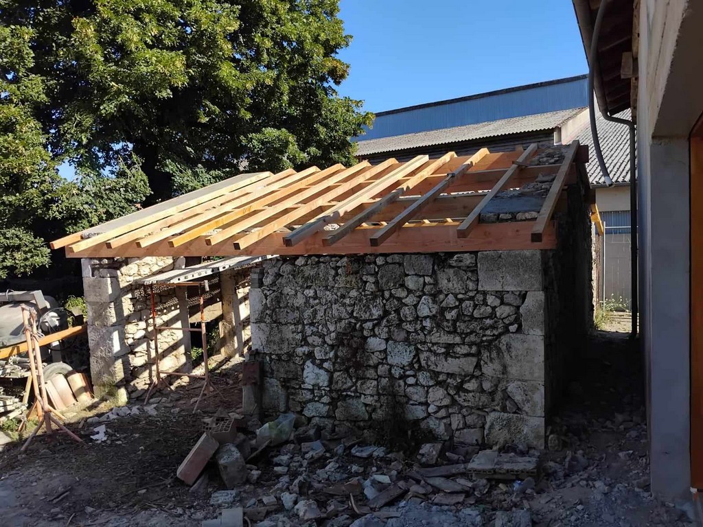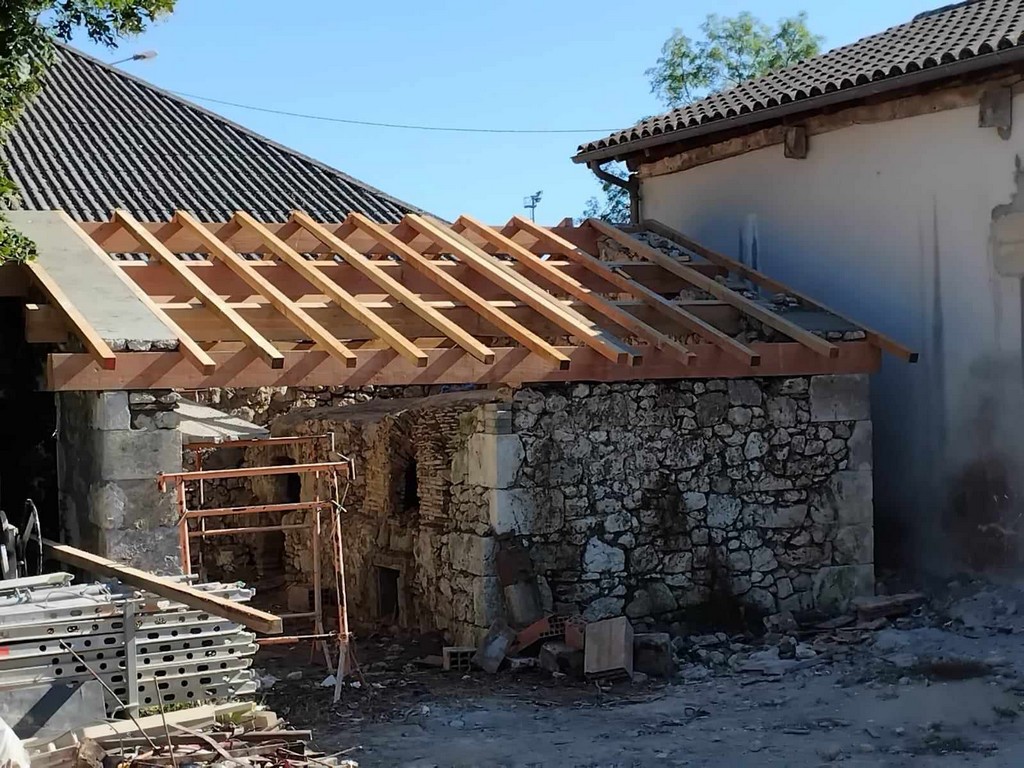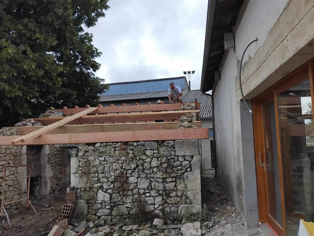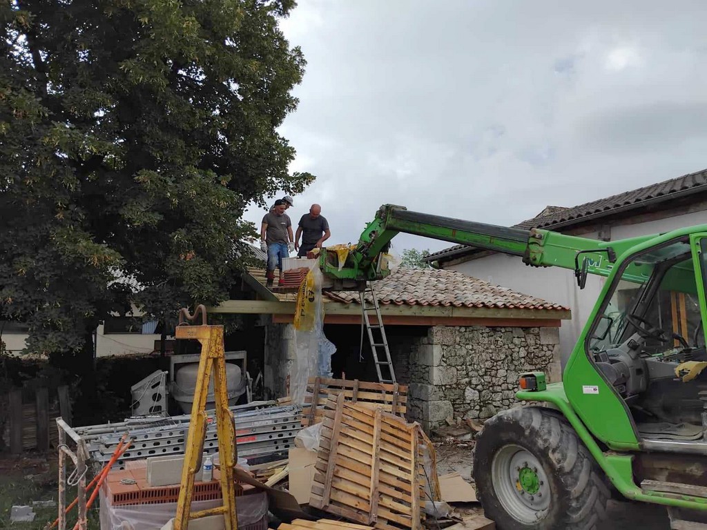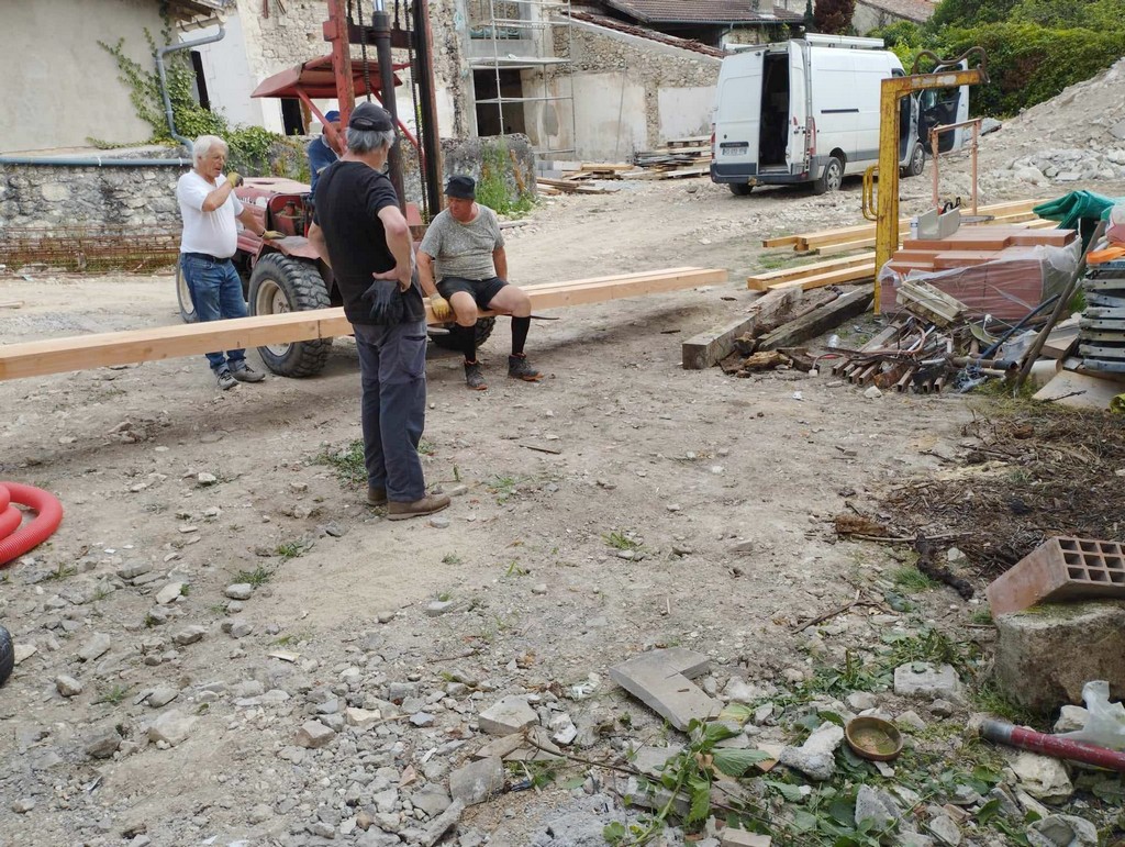 Au cours de la première semaine d’août, tandis que les entreprises en charge du gros-œuvre sur les Maisons Brugère sont en vacances, les travaux de réfection de la toiture des fours à pain vient de reprendre. A la manœuvre, monsieur le Maire Jean-Luc Gardeau, deux adjoints Germain Sauron et Jean-Paul Mothes, le conseiller Jeannot Garoste et des bénévoles Stéphane Bottin et Alain Crossoir. Un beau chantier qui va permettre de remettre en état et on l’espère, en service, ces deux anciens fours autrefois utilisés par la population sauvetatoise.