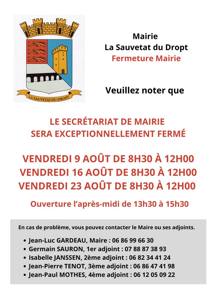 Info Mairie : fermeture exceptionnelle les vendredis matins d’août
