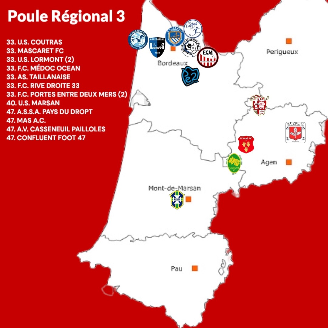 Découvrez la composition de la poule de Régional 3 dans laquelle évoluera notre équipe fanion. Une saison prometteuse et pleine d’émotions nous attend, avec un coup d’envoi fixé au dimanche 7 septembre. Nous comptons sur votre présence nombreuse chaque week-end au bord du terrain pour encourager nos joueurs !
