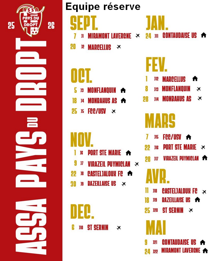 Découvrez le calendrier officiel de notre équipe réserve avec l’ensemble des matchs de championnat. Une saison prometteuse et pleine d’émotions nous attend, avec un coup d’envoi fixé au dimanche 7 septembre.