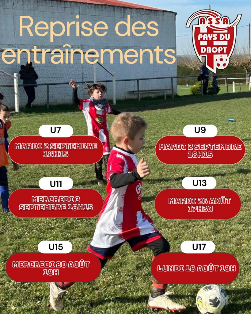 Voici les informations pour la reprise de nos jeunes ! Toutes les reprises se font au stade de La Sauvetat du Dropt !