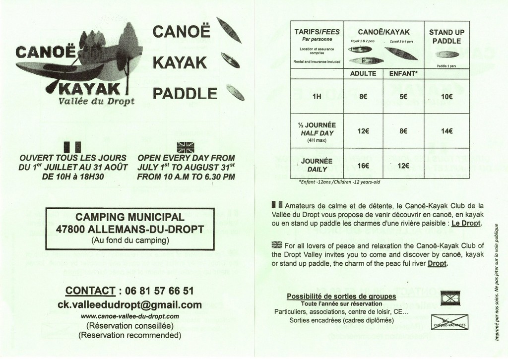 Information à retrouver sur la page Canoë Kayak Vallée du Dropt