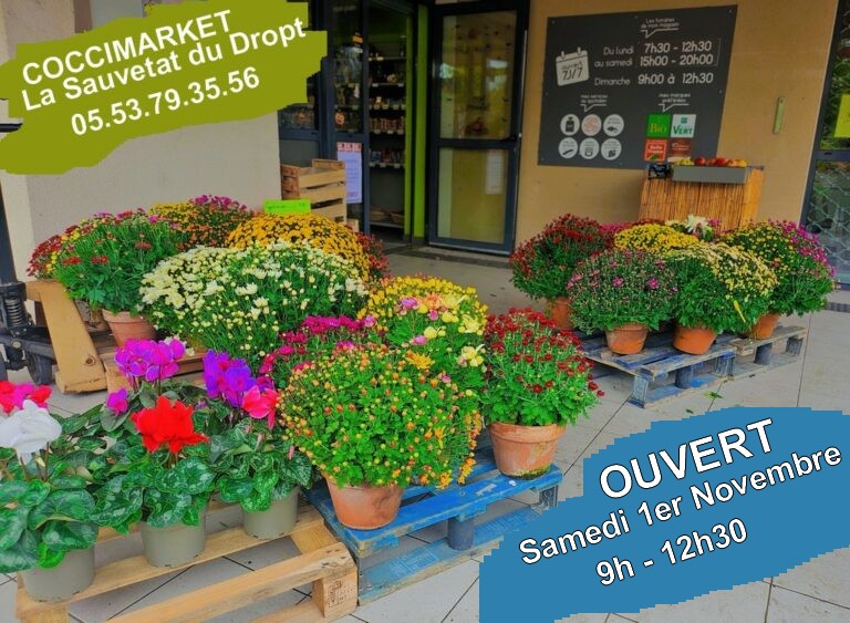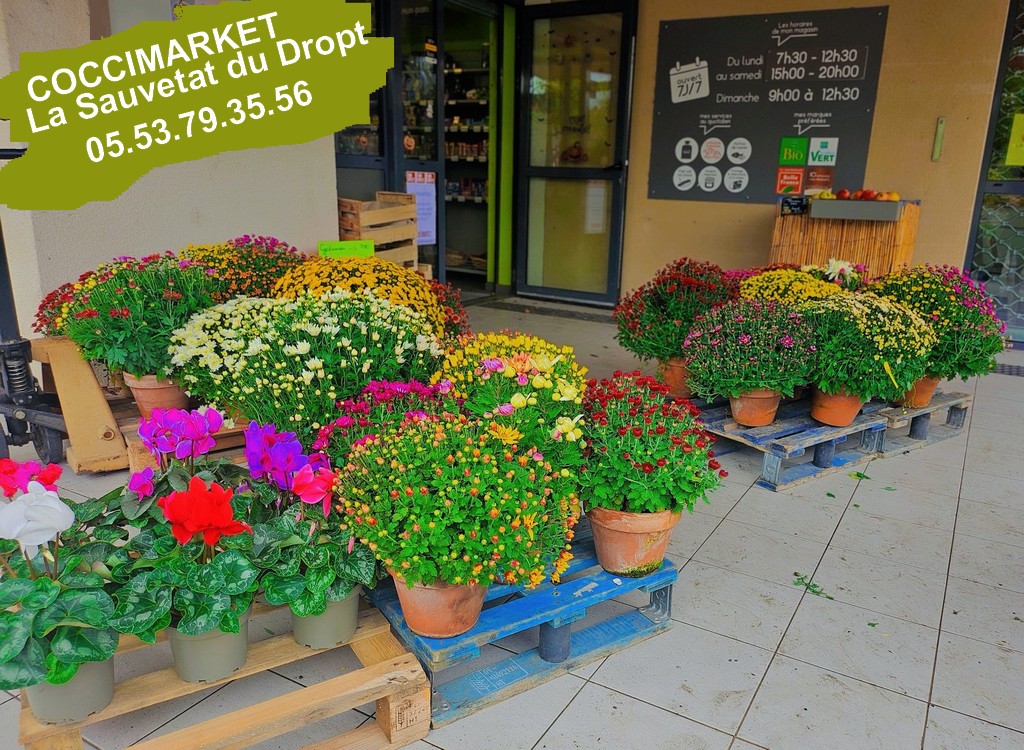 Pour vos chrysanthèmes et autres fleurs de Toussaint, pensez à votre épicerie de proximité CocciMarket à La Sauvetat du Dropt.