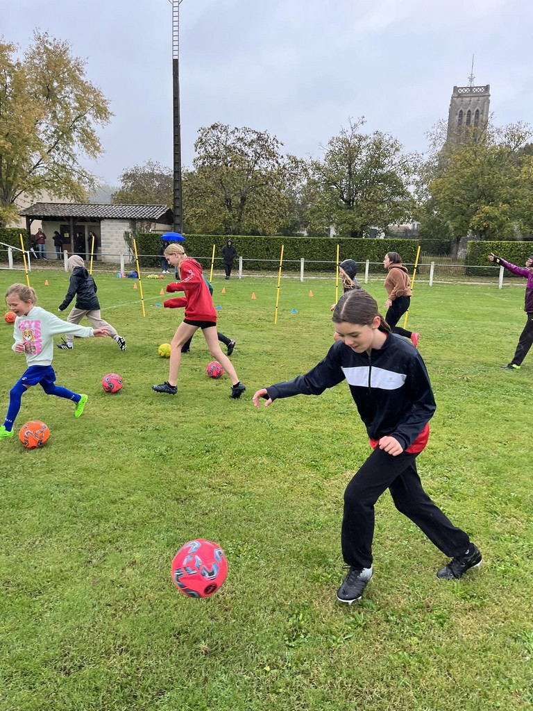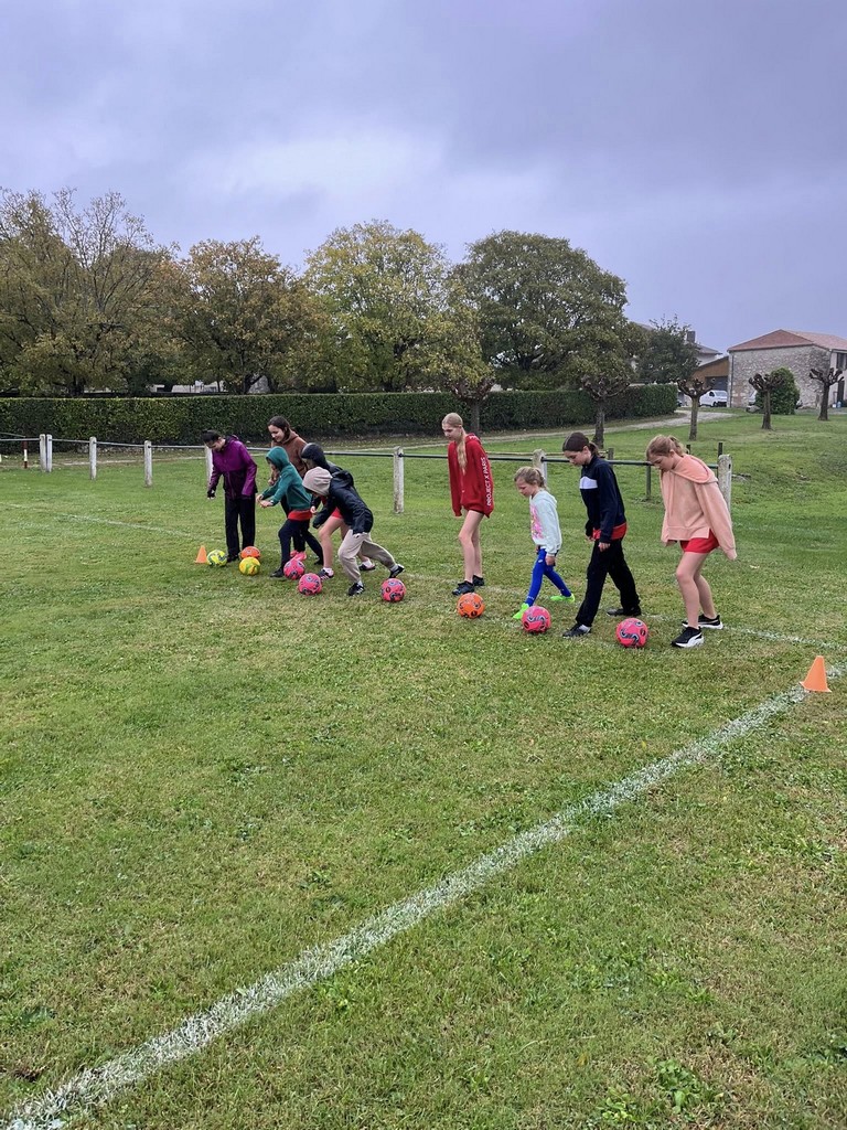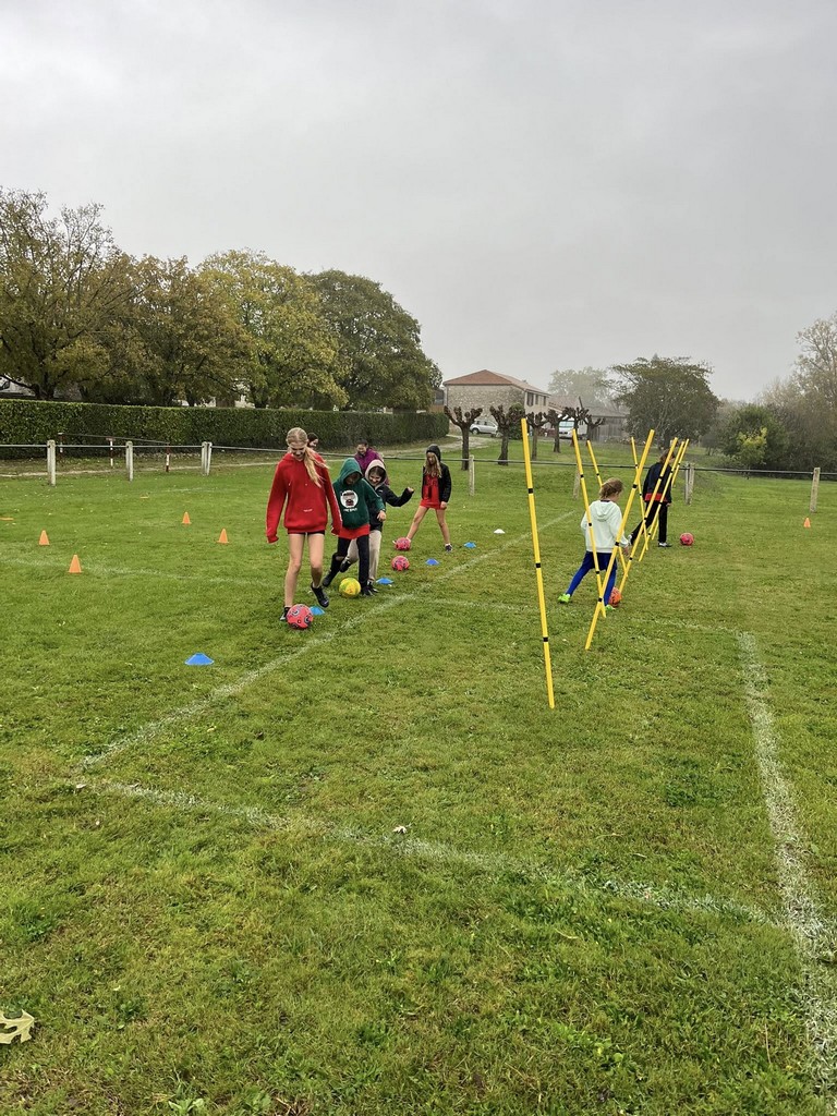 Today the girls had their first training session on the grass pitches at La Sauvetat du Dropt. It was a wet and soggy day, but the girls kept going and seemed to enjoy the experience of playing on a decent pitch. The session is for girls only and gives them the opportunity to learn new skills, meet new friends, and have fun along the way. Everyone is welcome to join us, and we’d love to see more French girls get involved. We urge people to share with family, friends, and other media platforms so we can get as many as possible to join on Saturday at 10 a.m., or just come and watch and see if you want to contribute. Email Stephen or Sally at stephensallyfelinski@gmail.com for more information.
