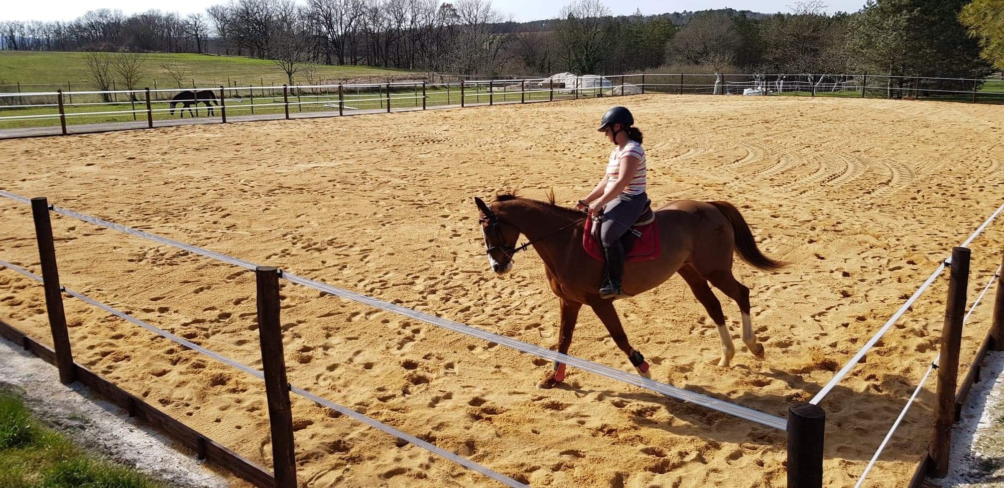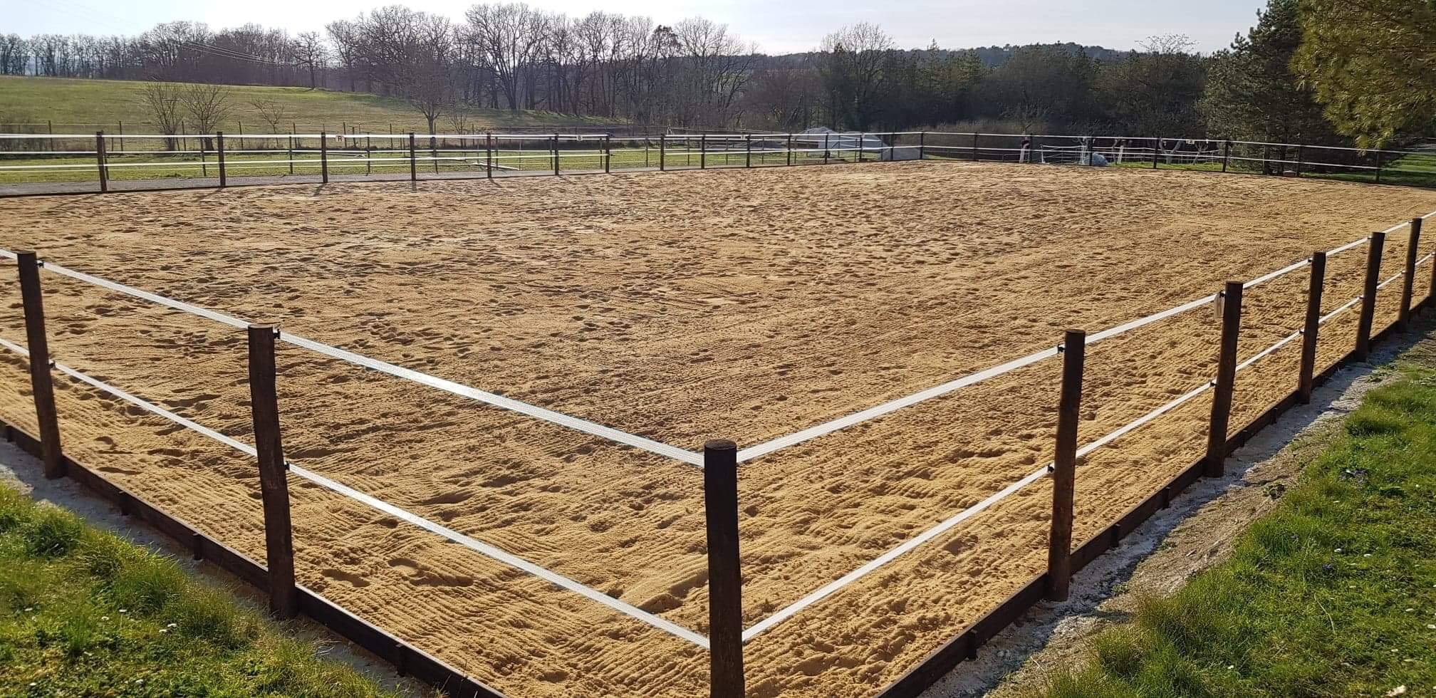 L’Écurie Karine Dercourt s’agrandit petit à petit et vous présente sa carrière (27×50) en sable, clôturée, avec matériel d’obstacles.