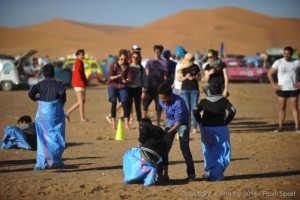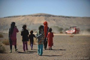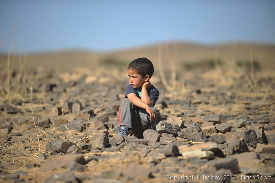C’est à cet endroit que tous les équipages offrent leurs dons aux enfants du village pour l’association « Enfants du Désert ». Moment inoubliable où les Trophystes ont ainsi pu échanger des instants privilégiés avec les enfants du grand sud marocain, profitant pour installer un petit match de football ou des courses de sac poubelle.