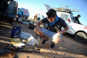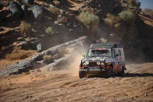 Histoire de se mettre un peu plus dans la compétition, ce matin, en plus du café chaud et des omelettes marocaines, les Trophystes partent pour les vrais premiers grands tours de piste. La première des deux boucles, l’ « Erg Chebbi » annonce à peine 100km de tracé. A priori un kilométrage raisonnable. Sauf quand on vise la montagne en forme de soucoupe plutôt que celle en forme de Tajine, comme indiqué sur le Road Book. Les participants ne sont pas encore totalement aguerris, le piège ce mardi sera bien la navigation. Les plus pressés rejoindront le bivouac après quatre heures de spéciale. D’autres retrouveront leur tente à la nuit.