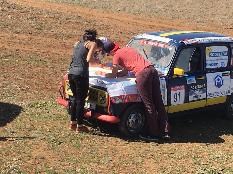 C’est eux qui nous envoient un sms à 17h16 précises pour annoncer que l’équipage 91 est arrivé à bon port. Voiture entière et arrivée dans les premières places. Ceci dit, nous explique Marie, ce n’est pas un raid de vitesse et les premiers arrivés ne seront pas forcément dans les premiers au classement s’ils ont par exemple oublié certains pointages.