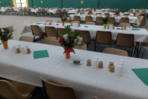 Menu complet pour 15 €. Ambiance bon enfant. Dans la salle des animations.