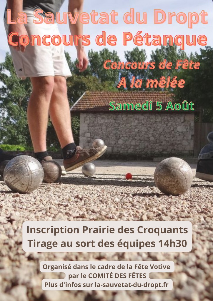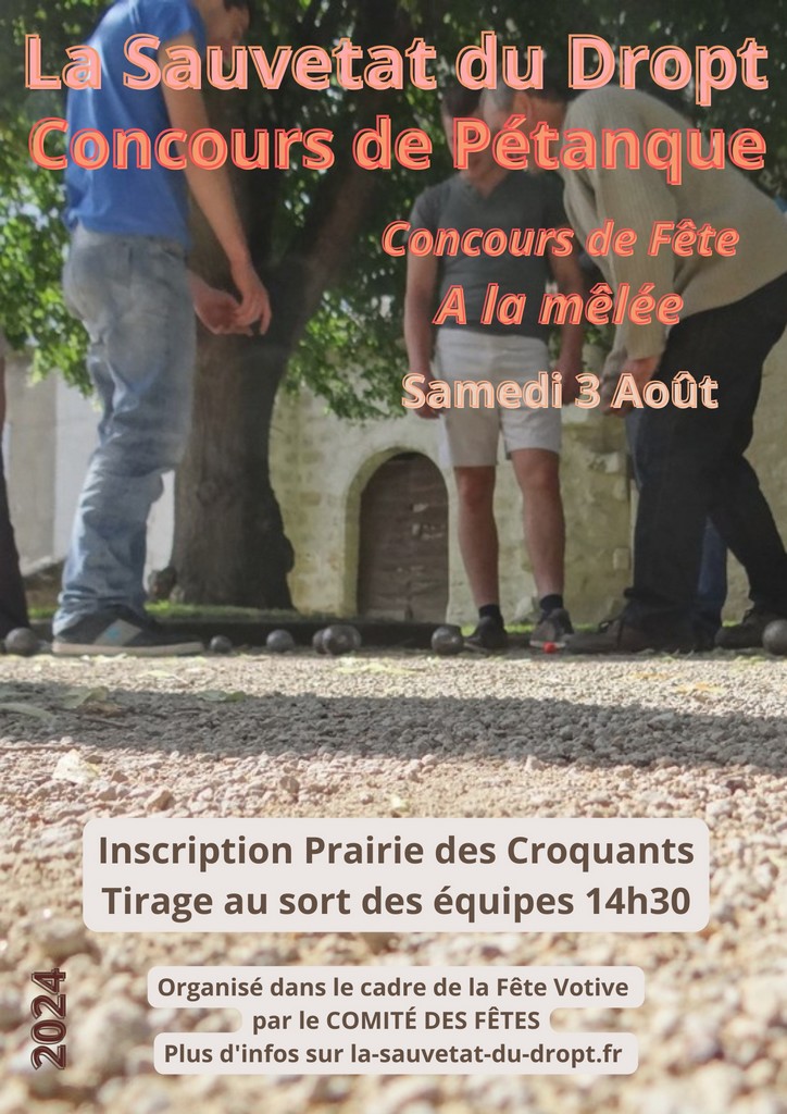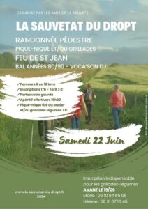 Contact et inscription: Isabelle au 06 82 34 41 24 ou Aurélien au 06 31 04 92 57 ou info.sauvetatdudropt@gmail.com