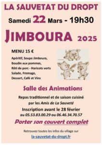 REPAS JIMBOURA – Samedi 22 mars 2025 – 19h30