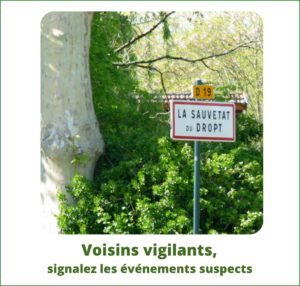 Ce mardi 23 mars, un camion-boutique itinérant de couleur bleue a été intercepté par une habitante du village de La Sauvetat du Dropt alors que la conductrice chargeait, de façon très naturelle mais sans autorisation, le bois entreposé dans la cour de la ferme. La gendarmerie est avertie et fera le nécessaire. Il est cependant recommandé d’être vigilant et de signaler tout événement suspect auprès de la mairie.