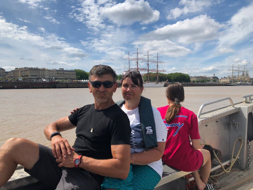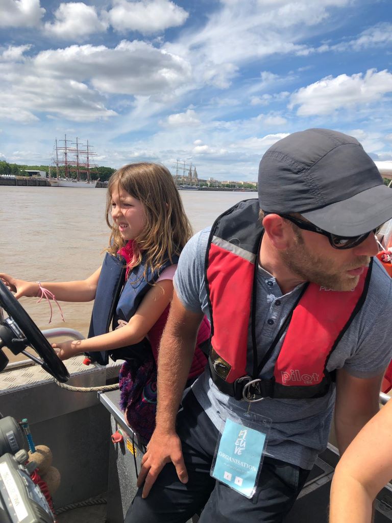 Samedi 22 juin, Céline, Fred et Anne se retrouvaient à Bordeaux où les attendait Boris Lesimple, en charge de l’accueil des beaux voiliers entrés dans le port en tant que coordinateur nautique de la Fête du Fleuve. Boris est le fils de Anne, Romane à la barre, sa petite fille. La joie des retrouvailles en famille. Une fin de voyage en beauté pour les itinérants avant de reprendre le chemin de la maison et du travail.