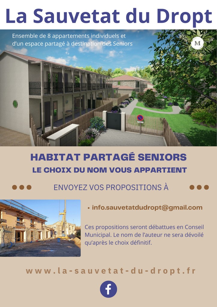 Depuis le dernier appel, nous avons reçu une dizaine de noms pour cet ensemble d’Habitat Partagé à destination des Seniors. Vous pouvez cependant encore envoyer vos propositions à info.sauvetatdudropt@gmail.com Nous ferons le point à la fin de l’année. Continuez de réfléchir, parlez-en autour de vous et faîtes-nous part de vos idées.