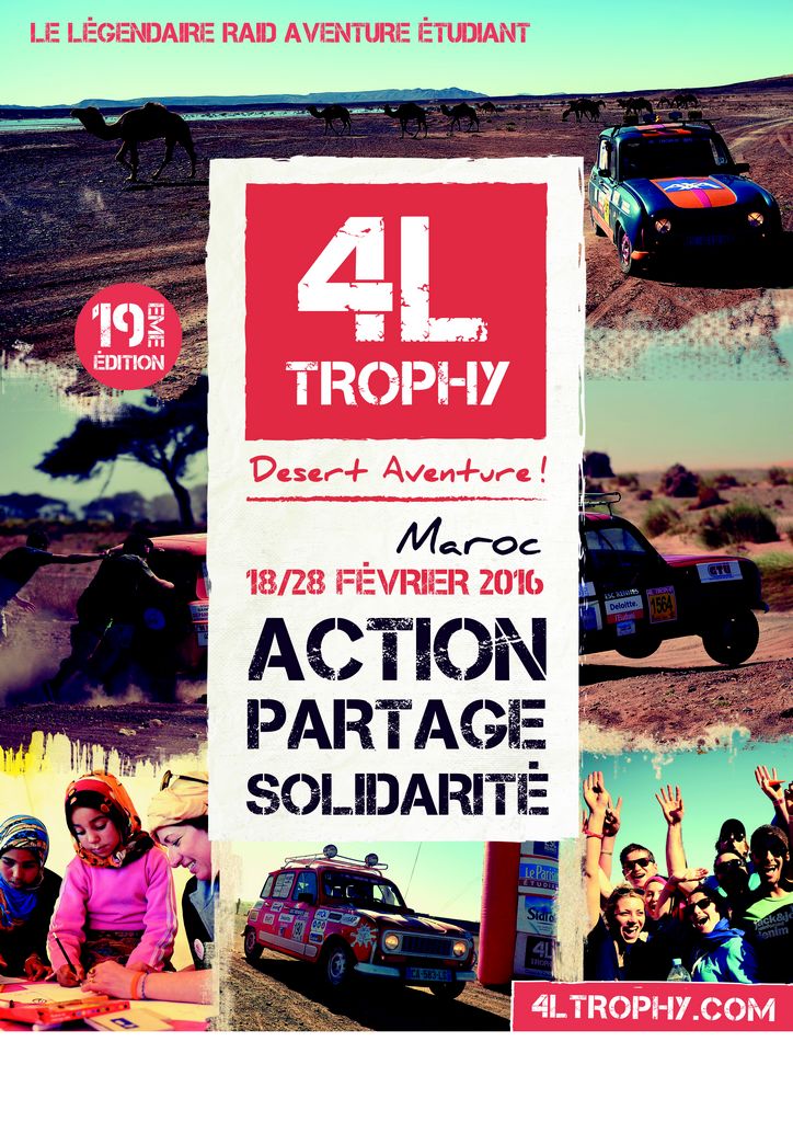 Parmi les nouveaux arrivants au village, il faut citer Marie et Alain Requier, dynamique couple très vite intégré au sein des associations et plus spécialement au sein du Comité des Fêtes. Ces nouveaux Sauvetatois ont un fils, Benjamin, inscrit à la 19ème édition du 4L Trophy qui se déroulera du 18 au 28 février. Benjamin, pilote, fait équipe avec Timothy Greil, co-pilote. Leur équipage s’appelle la 4L Dimension et portera les couleurs de notre village puisque la voiture sera dotée de notre écusson, ainsi que celui de Bûche Eco 47 qui a accepté de les sponsoriser. Pendant toute la durée du RAID, du 18 au 28/02/2016, vous pourrez suivre leur aventure en vous connectant sur le site Facebook 4L Dimension – 4L Trophy – Équipage 91