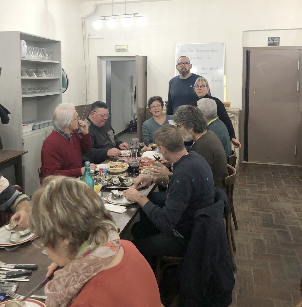 Le vendredi 30 décembre, si le hasard vous a conduit à rentrer aux Fées Gourmandises pour boire un petit café ou acheter votre journal, vous avez peut-être été retenus pour déguster des huîtres et autres victuailles. En effet, Maureen et Nicolas avaient décidé de marquer de façon conviviale et informelle les presque 1 an de reprise du commerce. C’est ainsi que se sont retrouvés les habitués du comptoir et les gais lurons du village.