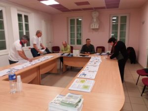 Maire et conseillers font la mise en page du bulletin municipal. Photo de Jean-Paul Mothes, 4ème adjoint.