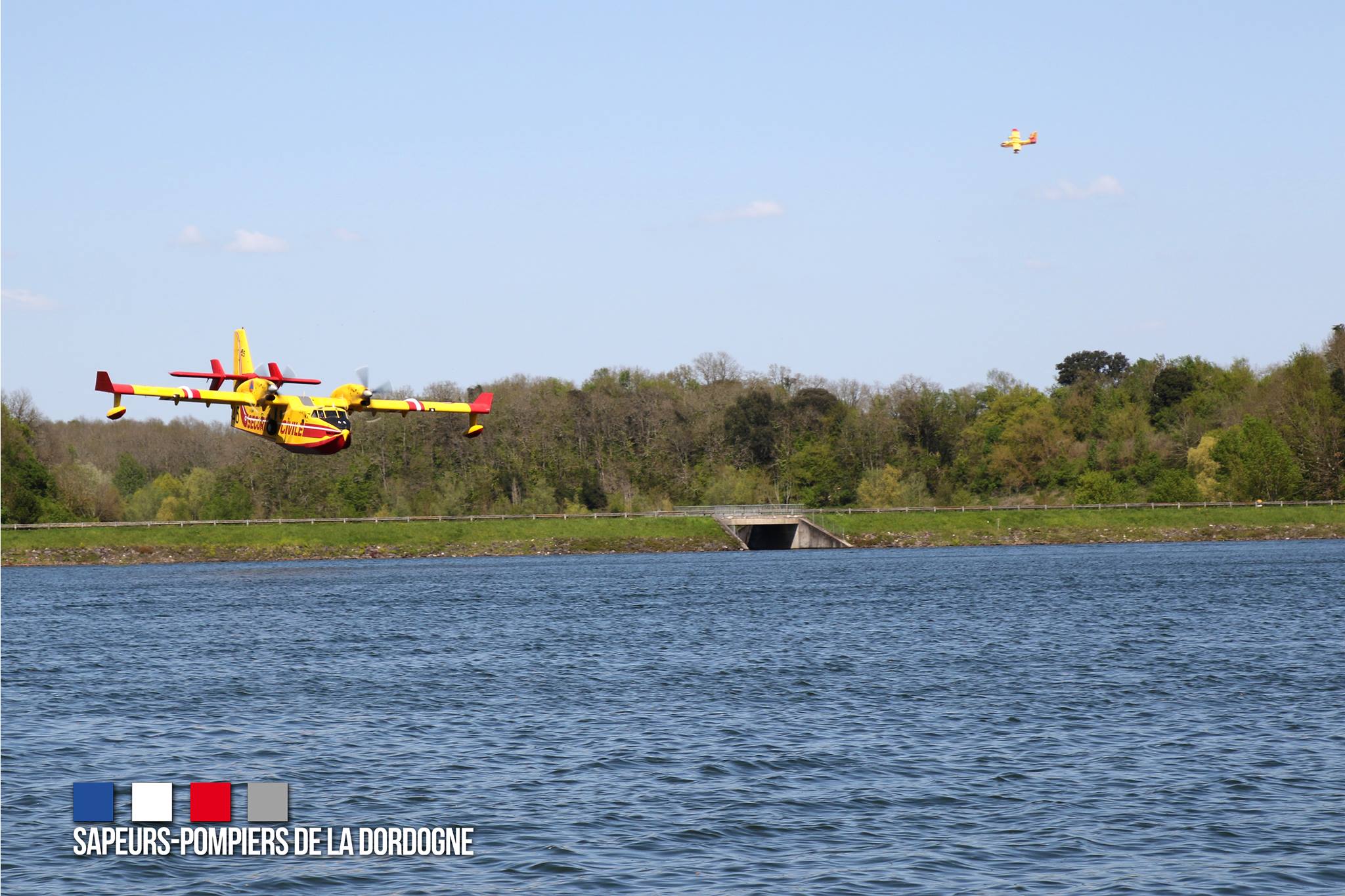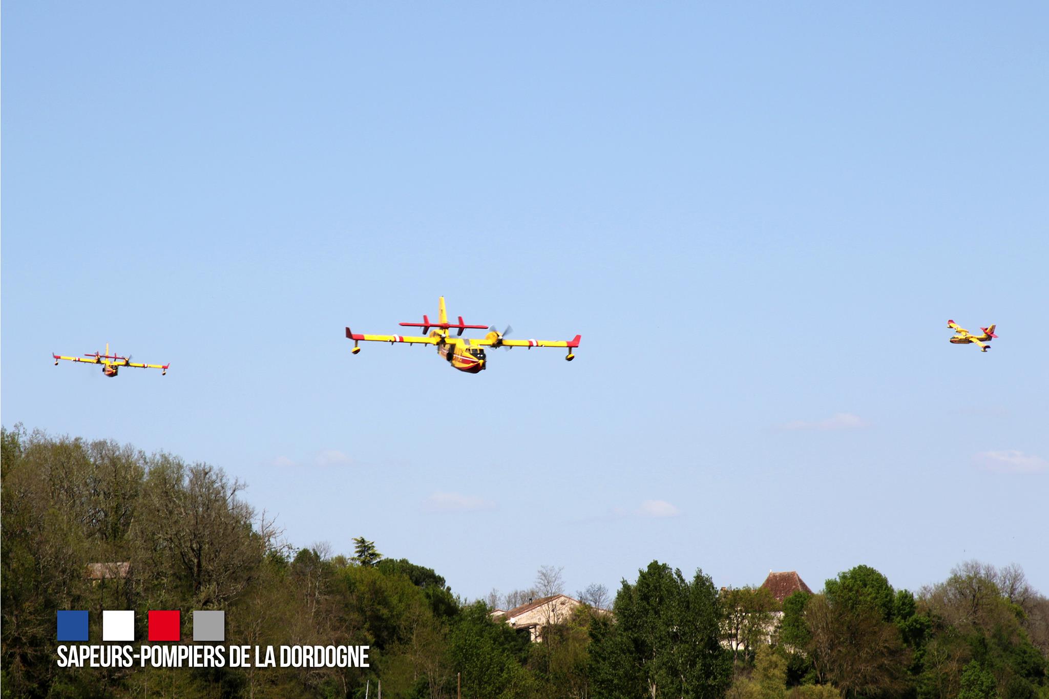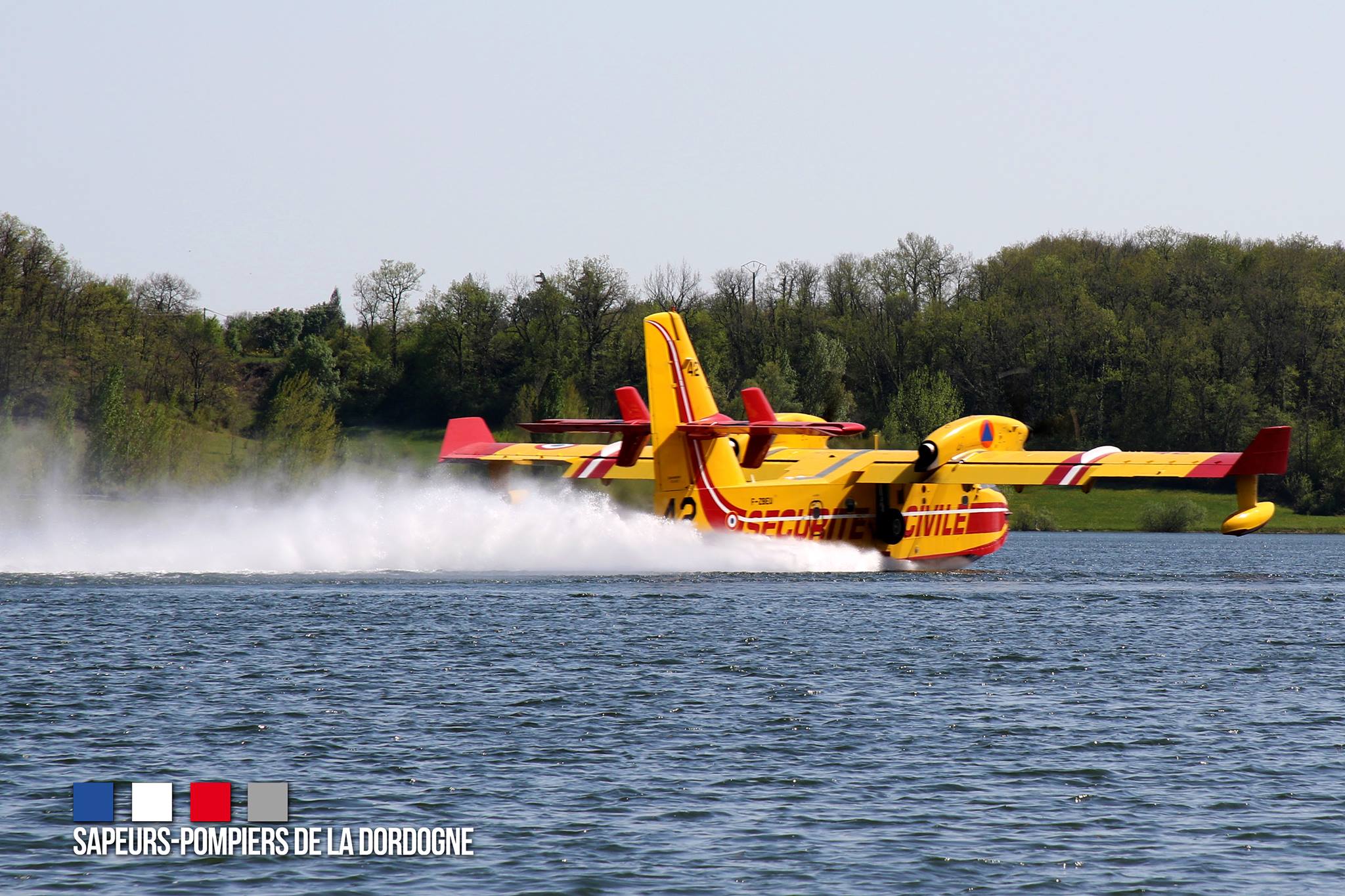 Symbole de la lutte contre les incendies, le canadair peut transporter jusqu’à 6000 litres d’eau. La flotte française étant basée à Nîmes-Garons depuis le 03 avril 2018, certains de ces avions viennent chaque année soutenir les sapeurs-pompiers au sol lorsque les feux de végétation sont nombreux ou virulents dans le département de la Dordogne.