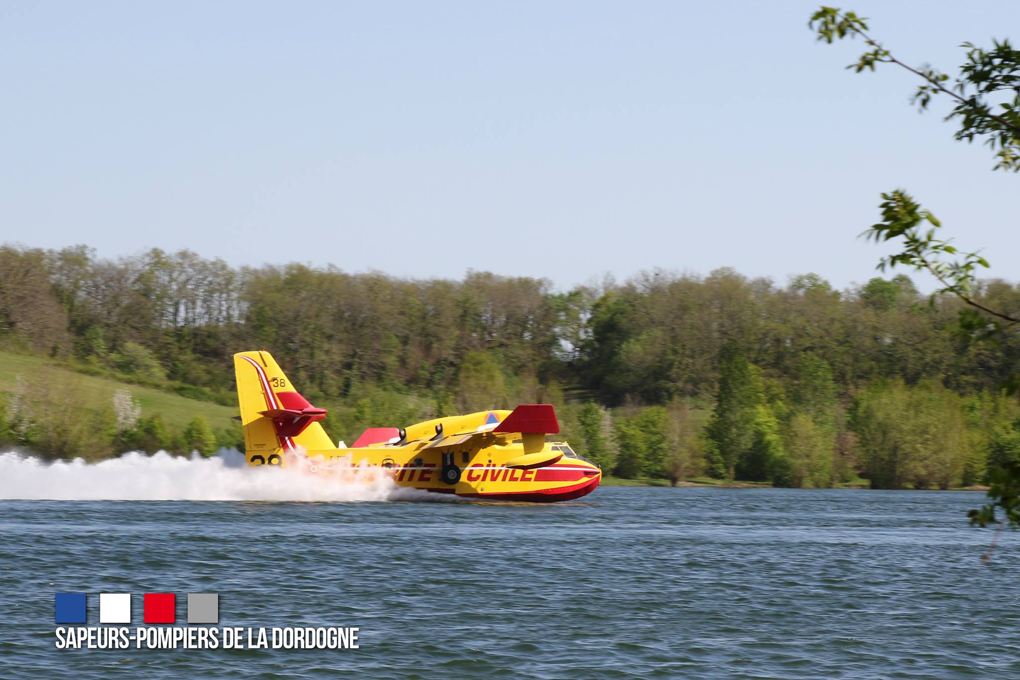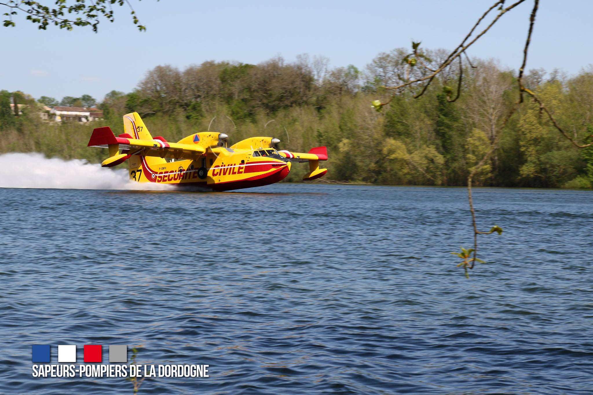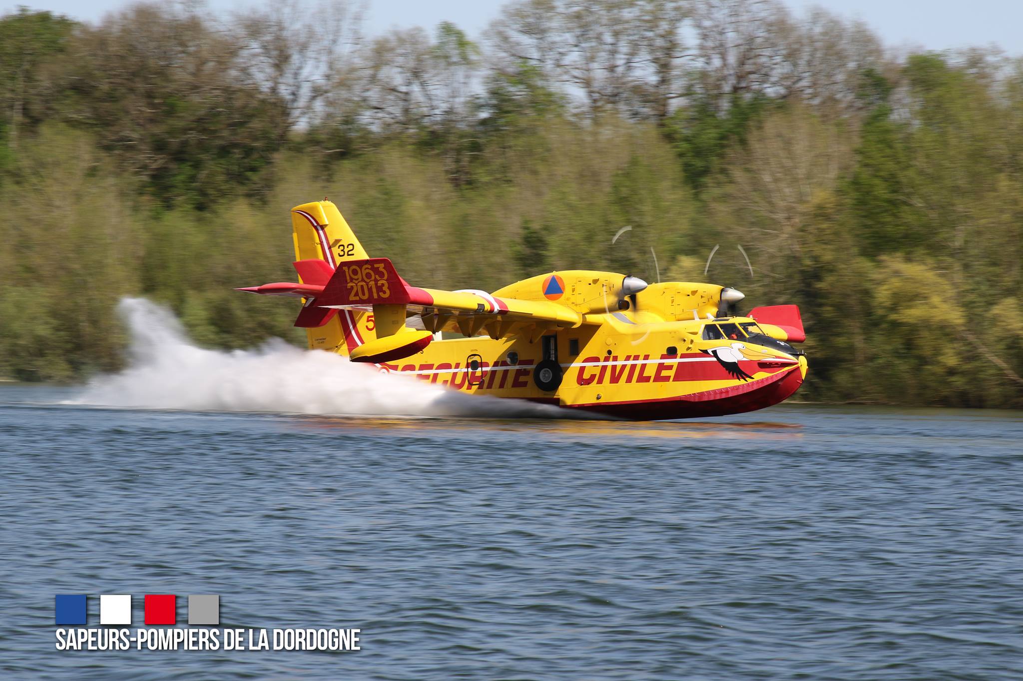 Symbole de la lutte contre les incendies, le canadair peut transporter jusqu’à 6000 litres d’eau. La flotte française étant basée à Nîmes-Garons depuis le 03 avril 2018, certains de ces avions viennent chaque année soutenir les sapeurs-pompiers au sol lorsque les feux de végétation sont nombreux ou virulents dans le département de la Dordogne.